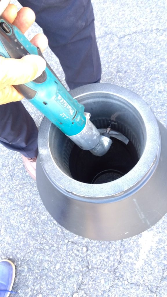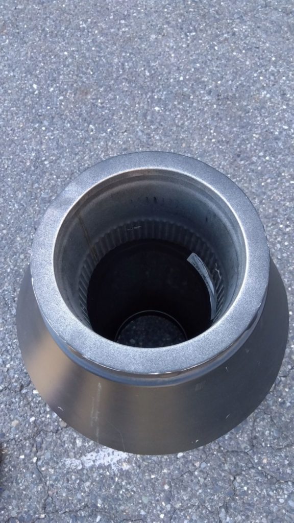 煙筒とカラーの接合部にシリコンコーキング、