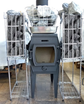 熱くなったサウナストーンに水をかけ、蒸気をつくれば