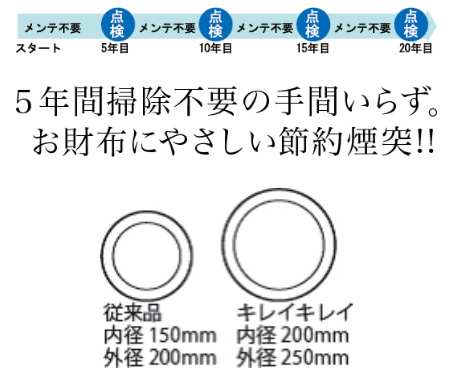・内φ200 外φ250mmの二重煙突です。従来品は内φ150 か152mm