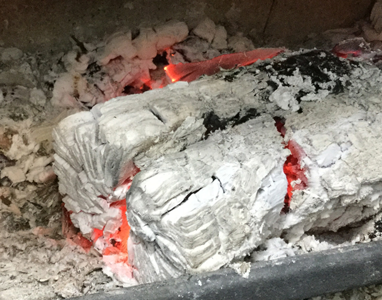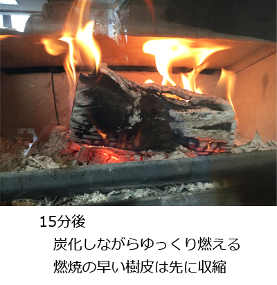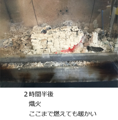 途中で中薪をくべた影響もあり、3時間経っても燃え続けています。