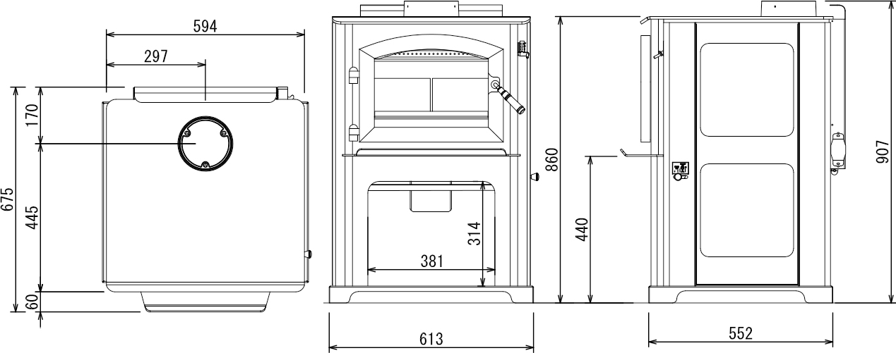 最大熱出力:11,100kcal/h 中型ストーブ