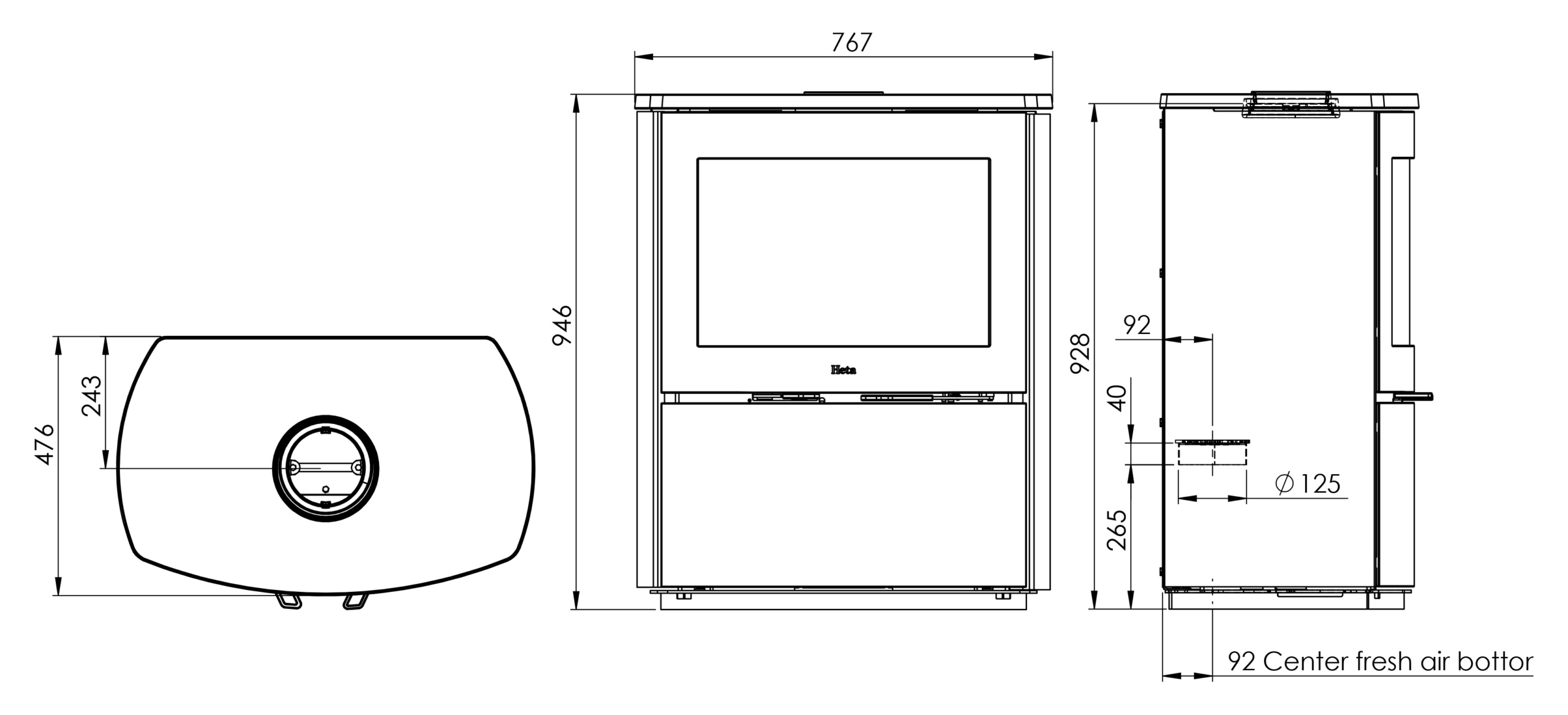 50 センチの薪が入る大きな炉内、86% を誇る燃焼効率、寒い冬をパワフルに暖める HETA 最大モデル。