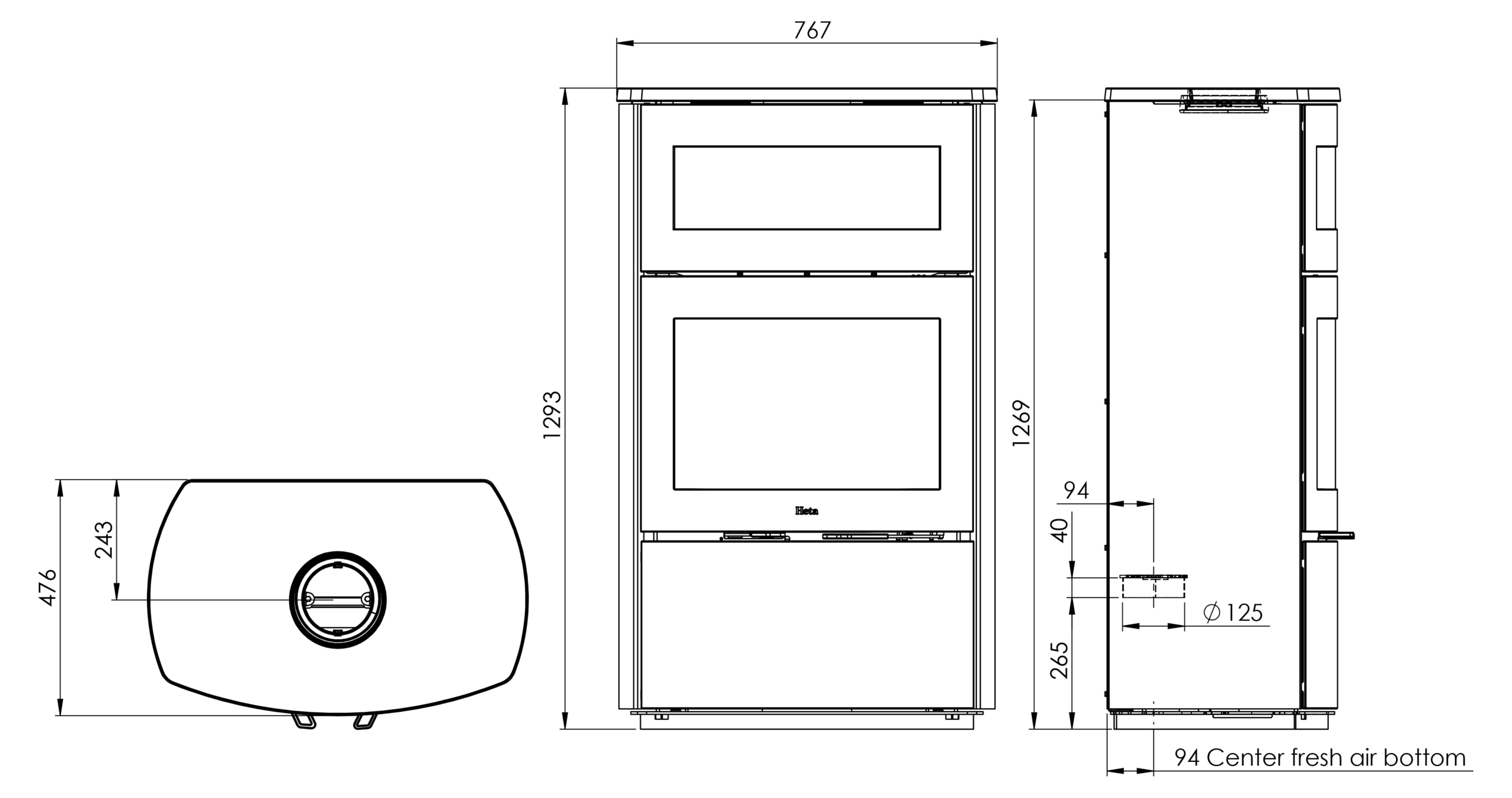 50 センチの薪が入る大きな炉内、86% を誇る燃焼効率、寒い冬をパワフルに暖める HETA 最大モデル。