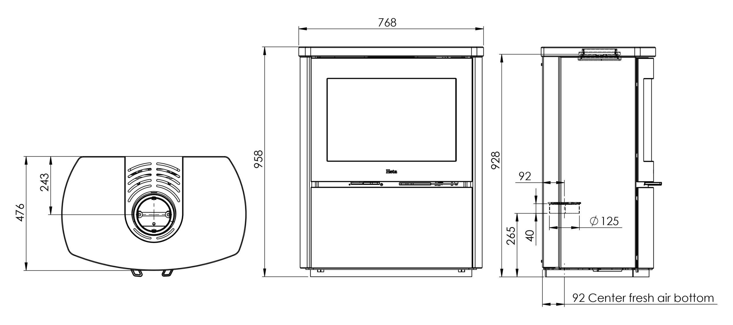 50 センチの薪が入る大きな炉内、86% を誇る燃焼効率、さらにソープストーンの蓄熱機能も加わり、寒い冬をパワフルに暖める HETA 最大モデル。