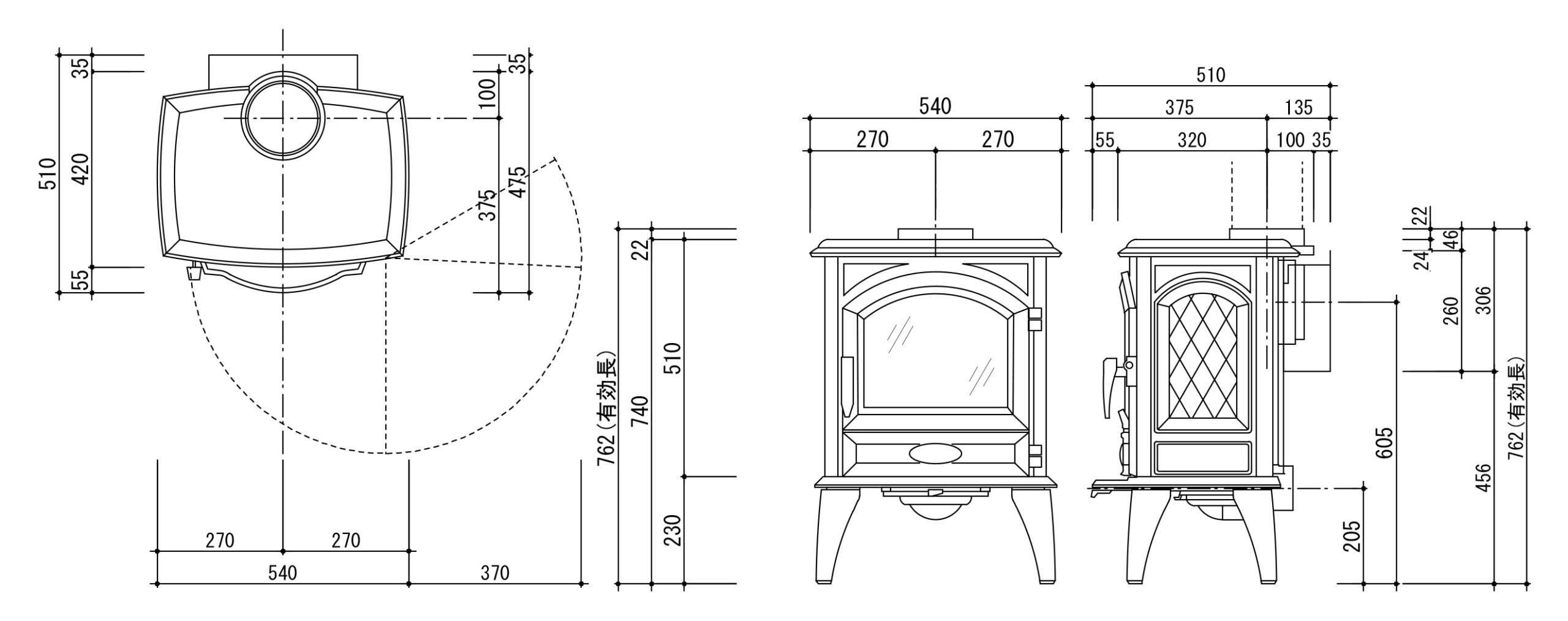 ※ 全ての薪ストーブに「梱包送料」「組立工料」が別途かかります。