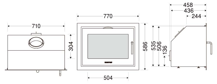 更に、このビルトインモデルの大きな特徴は、最長 550mm までの薪が投入できる大きな燃焼室を持っていることです。